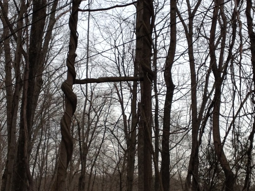 Wisteria Chin-Up Bar May 29, 2014 3264 × 2448 Grey Towers National Historic Site Here Wisteria has jumped from tree to tree, creating a chin-up bar! Note the thick vine strangling the trees. (c) Kathleen V Salisbury