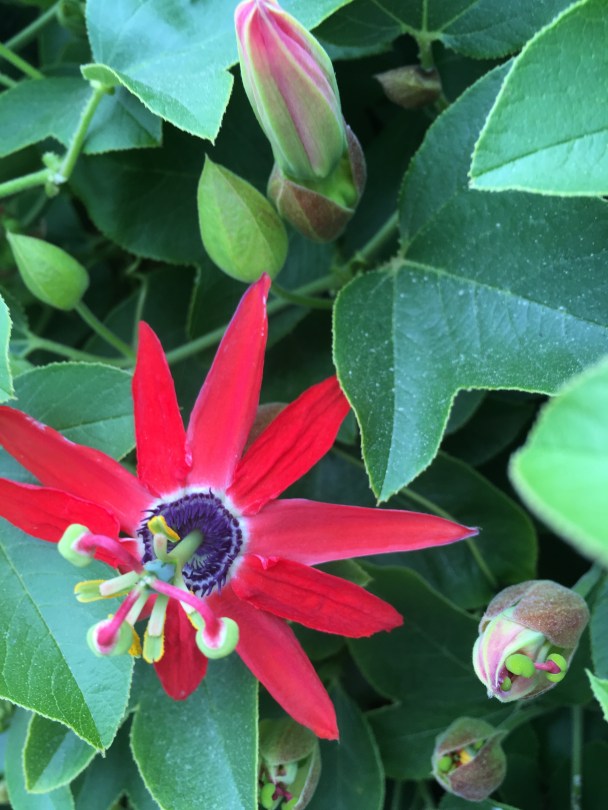 img_3984 October 15, 2016 3024 × 4032 Portillo and Valparaiso Chile Red passionflower vine adorns a fence in Valaparaiso