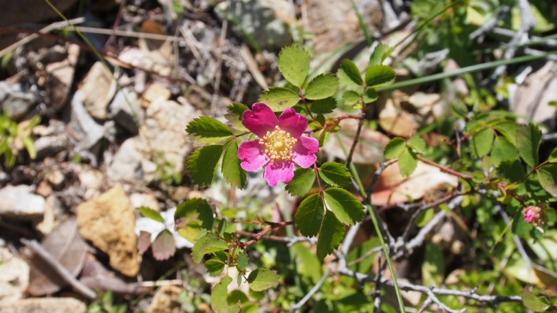 OLYMPUS DIGITAL CAMERA July 4, 2019 1280 × 720 The Tall and the Small – A Visit to the Redwoods and Finding Wildflowers Wood Rose (Rosa gymnocarpa)